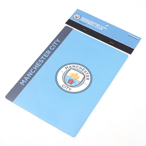 - プレミアリーグ(イングランド)、マンチェスター・シティのオフィシャルグッズ。クラブエンブレムがデザインされた下敷き。A4サイズ