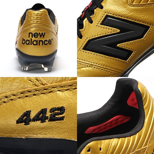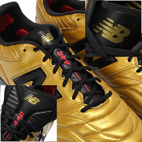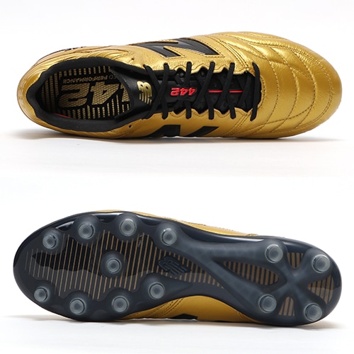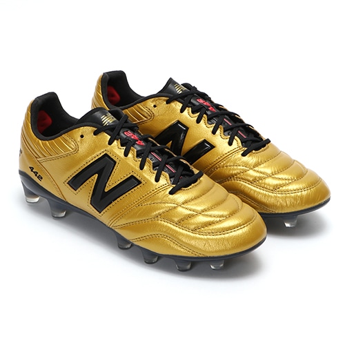 - 2022年11月11日(金)発売。新しい伝統、その努力を裏切らせない。NewBalance「442(ヨンヨンニ) V2」のゴールドカラー限定エディションが登場。HG(ハードグラウンド)対応のトップモデルスパイク。やや細めの足型のプレイヤー向けDサイズウィズモデル。
