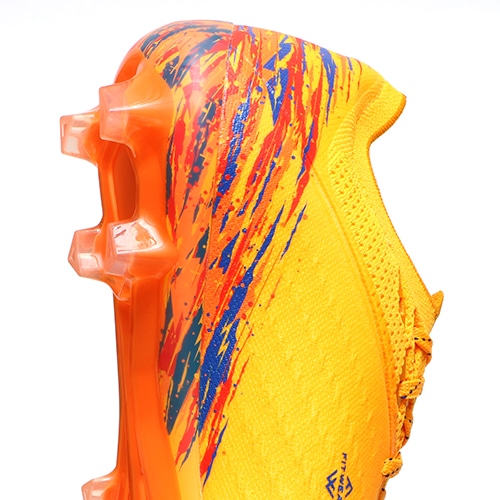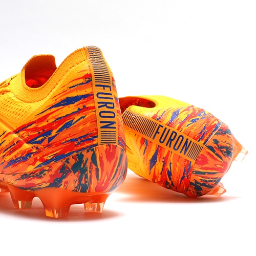 - 燃え上がる内面の闘志を表すような情熱的なオレンジで彩った2022年春夏コレクションが登場。スピードを武器にゴールを狙うストライカーに最適な「FURON(フューロン) V6+」のHG(ハードグラウンド)対応トップモデルスパイク。