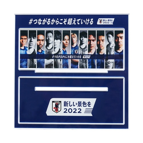 「#つながるからこそ超えていける」のビジュアルをプリントしたアクリルスタンド。
