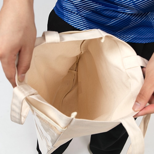 SAMURAI BLUE(サッカー日本代表)に"推し"がいるすべての方のためのトートバッグが誕生。うちわがすっぽり収まる大判サイズ。バッグの裏側にはクリアポケット付き。