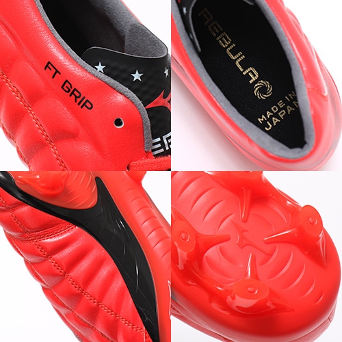 - ファーストタッチが素早いプレーを生み出す。スピードでゲームをコントロールする、REBULA(レビュラ)シリーズ第4世代のMADE IN JAPAN トップモデルスパイク。2021春夏NEWカラー『IGNITION RED(イグニション レッド) PACK』。