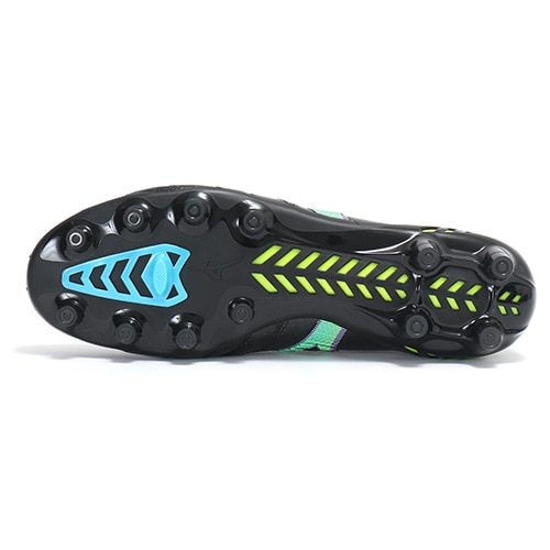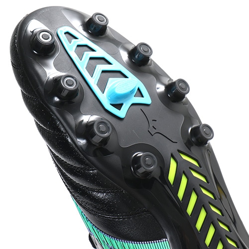 ●アウトソールはシャンクハニカム構造で剛性を確保しつつ軽量化に大きく貢献。スタッドトップのTPU樹脂の部分を増やすことで耐摩耗性が約145%向上(MORELIA NEO Ⅱと比較)。