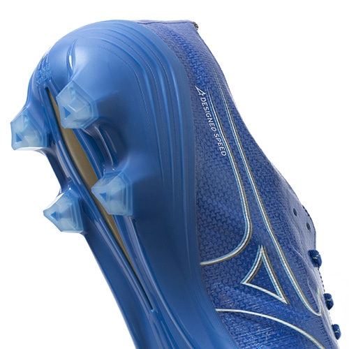 ●基本的なスタッド配置はMORELIAシリーズを参考にしつつ、より縦へのスピードやクイックな動きを実現するための「トライアングルスタッド」を採用。踵部分は高反発ソール素材(MIZUNO ENREZY)を使用することで、クッション性が向上し、ハードワークに貢献。