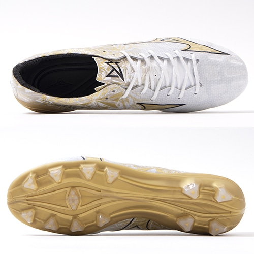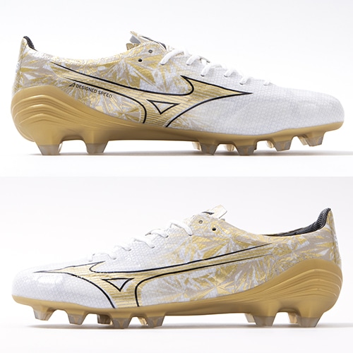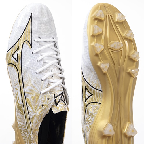 - 2023年11月17日(金)発売。ミズノの独自技術を搭載し、現代フットボールに求められる"ハードワーク"と"スプリント"の機能を兼ね備えた、ミズノフットボール史上、最もスピードを追求したフットボールブーツ『MIZUNO α(ミズノ アルファ)』に2024年春の新色プリズムゴールドが早くも登場。基本的なアッパー構造はJAPANをベースに、耐久性のあるアウトソールが魅力のPROモデルスパイク。