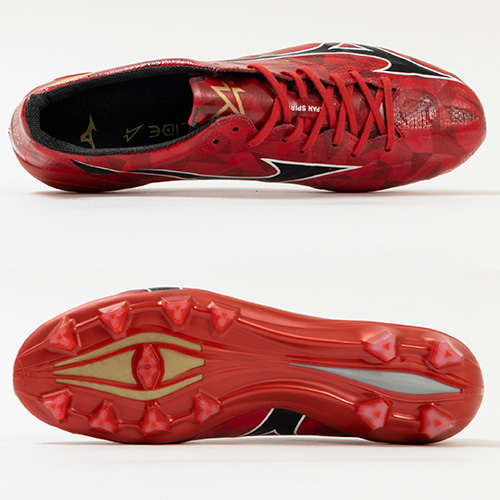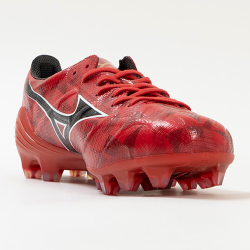 - 2025年6月6日(金)発売。MORELIAシリーズ誕生40周年を記念した限定カラー「RUBY RED(ルビー レッド) PACK」が登場。スピードは、新次元へ。従来の5層のアッパー構造を6層にアップデートし、より柔らかな履き心地を実現。さらなるスピードを追求した『MIZUNO α(ミズノ アルファ) 2』の日本製トップモデルスパイク。