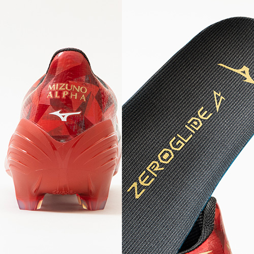 ●MORELIA NEO IV 同様の中底(Bare-Foot)を採用。軽量性と柔軟性、素足感覚を追求。インソールにも軽量メッシュ材の「ZEROGLIDE α MESH」を採用。横ブレを軽減し、キレのある動きをサポート。