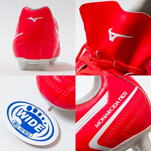 - 2023年9月15日(金)発売。ミズノフットボール秋冬の新色フェアリーコーラルカラーを採用した「RELEASE(リリース) PACK」が登場。サッカーに全てを捧げる部活プレーヤーのためのMIZUNO「MONARCIDA(モナルシーダ)」のワイドフィット採用のジュニア用エントリーモデルスパイク。