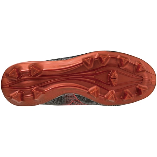 ●基本的なスタッド配置はMORELIAシリーズを参考にしつつ、より縦へのスピードやクイックな動きを実現するための「トライアングルスタッド」を採用。スタッドの大きさや素材をTPUに変更することで、トップモデルに比べて、耐久性のあるアウトソールに。
