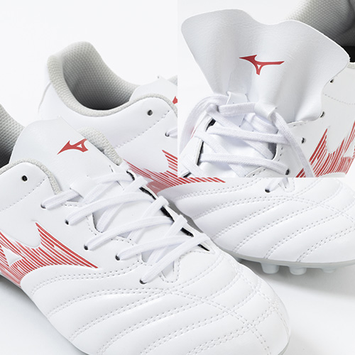 サッカーを楽しむ相棒に。軽量・柔軟・素足感覚のDNAを継承した、ワイド設計のジュニア用MG(マルチグラウンド)対応エントリーモデルスパイク。