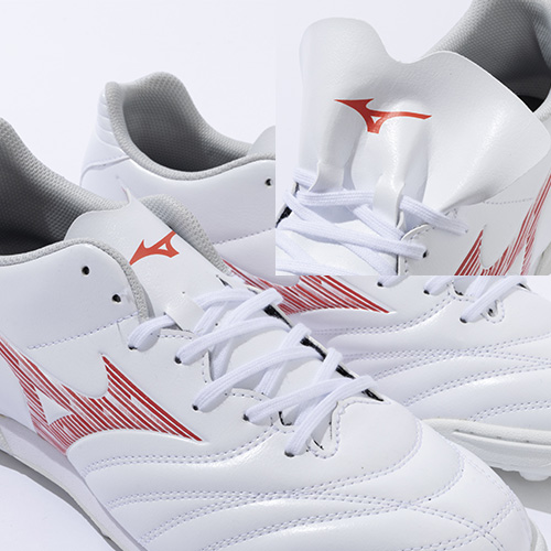 ●甲高、幅広選手にオススメのスーパーワイドフィット(4E相当の方向け)モデル。履き口の素材に人工スエード素材を採用。柔らかい足あたりを実現。