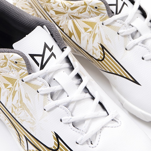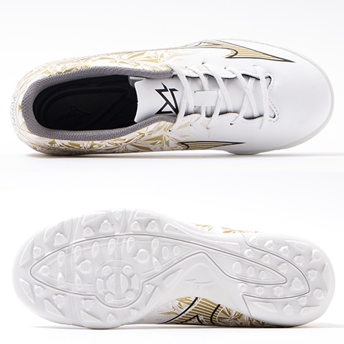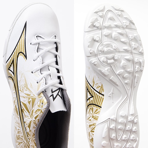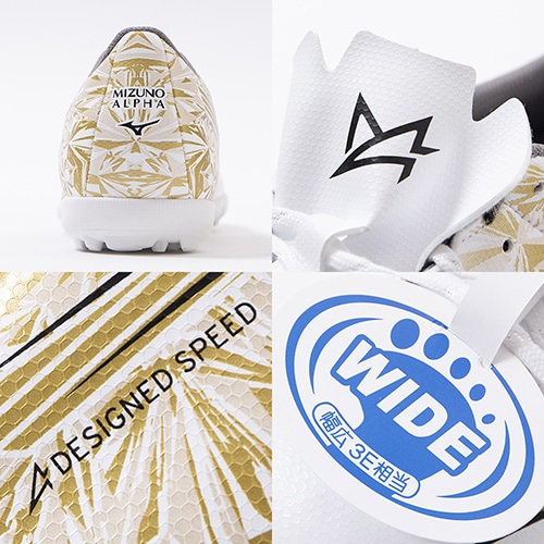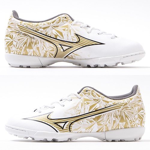 - 2023年11月17日(金)発売。ミズノの独自技術を搭載し、現代フットボールに求められる"ハードワーク"と"スプリント"の機能を兼ね備えた、ミズノフットボール史上、最もスピードを追求したフットボールブーツ『MIZUNO α(ミズノ アルファ)』に2024年春の新色プリズムゴールドが早くも登場。ワイドフィット採用のエントリーモデルのジュニア用トレーニングシューズ。