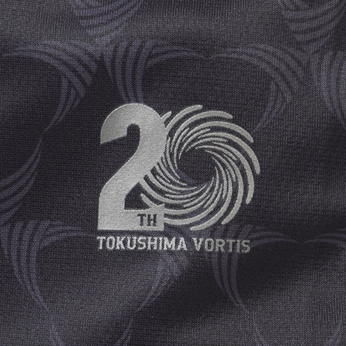 クラブ設立20周年を迎える今シーズンよりリニューアルした徳島ヴォルティスのエンブレムで三角形をつくり、隙間なく配置することでモノグラム調にした今までにないデザインにいたしました。これは、サッカーのパス回しの基礎である「トライアングル」を表しており、その基礎を積み重ねることで隙の無い、土台のしっかりした攻撃と守備を表現しています。また三角形を構成する各エンブレムは、選手、サポーター、クラブ・地域・企業の3者が支え合って20周年を迎えられたことを表しています。