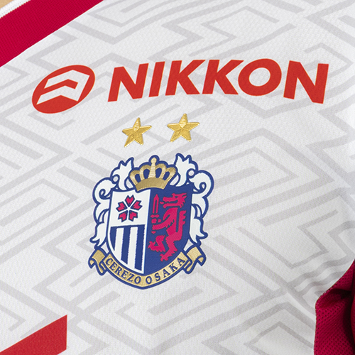 2025シーズンのユニフォームコンセプトは「和」。セレッソファミリーとして再びパートナーシップを組むミズノと、JAPAN BRANDとしての意思を表現。吉祥文様の「紗綾形(さやがた)」からインスピレーションを受け、セレッソ大阪のイニシャル「CO」と「桜の花弁」を融合した新時代を象徴するグラフィック。紗綾形が意味する「不断長久」は、共に過去を歩み、これから先も脈々と受け継がれていくサポーターとの繋がりを表す。さらに日本伝統の和服の前合わせに倣い、フライス仕様の襟形状にアクセントを加え、より和の世界観を引き立たせる、細部までこだわったデザイン。