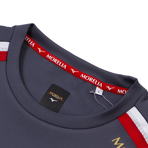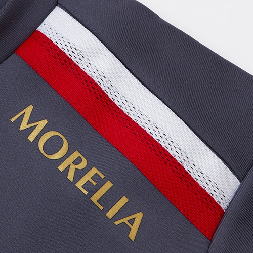 胸にメッシュテープを配し、MORELIAロゴをプリント。袖口をサムホール仕様にすることで、手を覆うことが可能な設計。