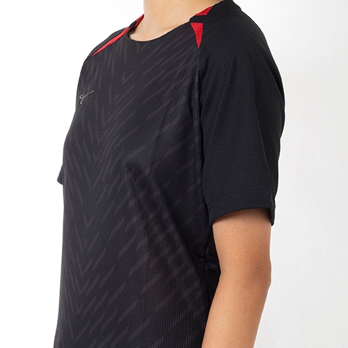 汗の膜が生地の通気性を低下させ、衣服内の温度上昇やべたつき感などの原因となっていることに着目し開発された高通気素材のドライエアロフローを採用。