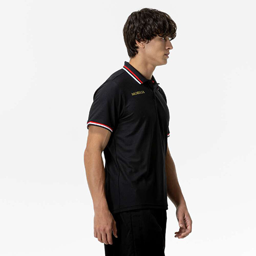 見た目はシンプルながら、襟と袖口にはモレリアカラーのフライス生地を採用。吸汗速乾性が優れていることを示し、汗を素早く吸収、拡散、ウエア内を快適な状態に保ちます。ガンメタ調のランバードマークがシックで高級感のある雰囲気を演出。体のラインに沿った細身のシルエット。