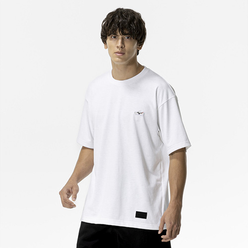 日本製の生地、日本の縫製工場で生産された、MADE IN JAPAN。左胸にはモレリアIIのワッペン。黒ボディには折り返しタンの黒いモレリア2、白ボディにはショートタンの白いモレリア2を表現。裾にはブラックアウトの立体型シュータンワッペン。
