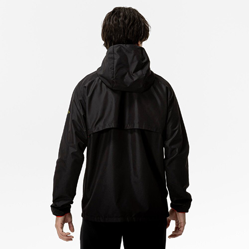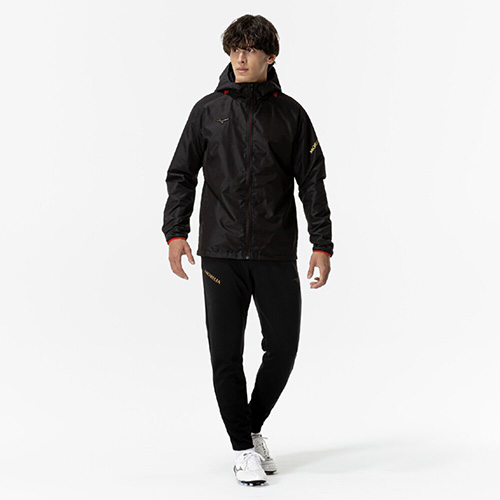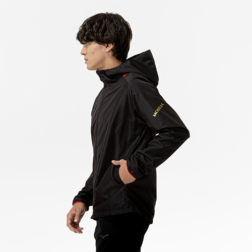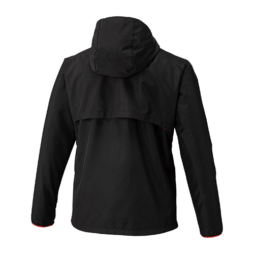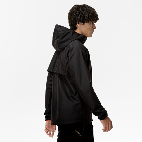 撥水加工を施した布帛生地を採用。前身頃にはレーザーカッティングによる通気口を配置。脇ポケット付き、ポケットファスナー無し。総裏メッシュ仕様。サイドポケットあり(ファスナーなし)