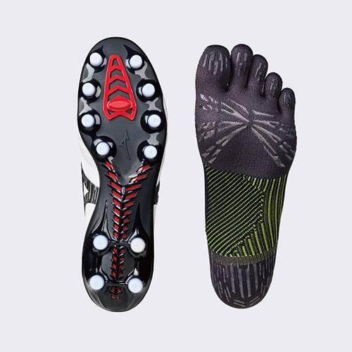 ●ミズノのスパイクに革新をもたらしたラスト「Engineered Fit Last NEO」を参考に編立を設計。スパイクとの一体感を実感できる優れた履き心地やサポート性を実現しました。