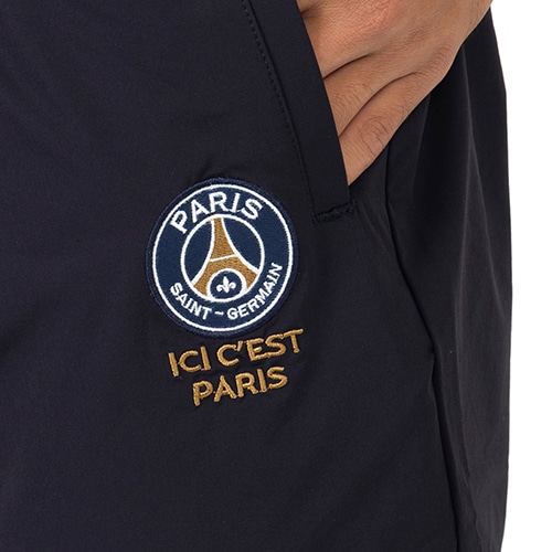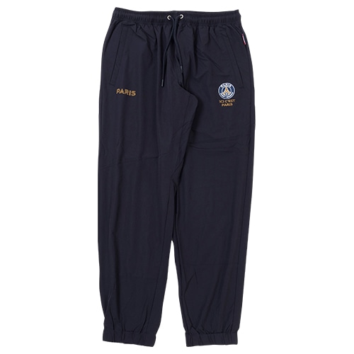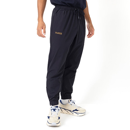 クラブのロゴがデザインされたウーブン素材のロングパンツ。