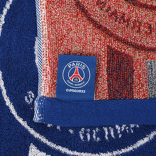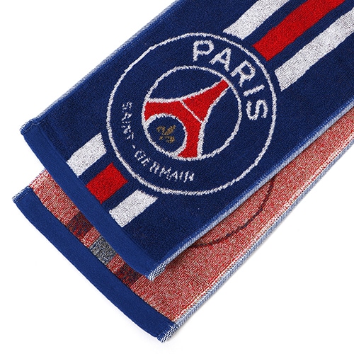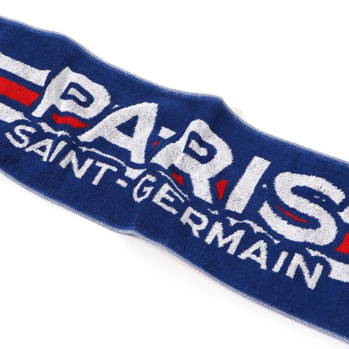 - リーグアン(フランス)、パリ・サンジェルマンのオフィシャルグッズ。エンブレムデザインのタオルマフラー。