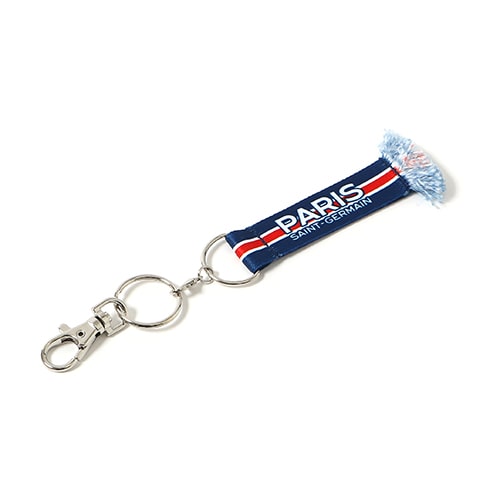 - リーグアン(フランス)、パリ・サンジェルマンのオフィシャルグッズ、ロゴデザインのマフラーキーホルダー。