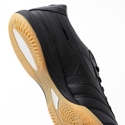 ●中足部には柔らかく、適度なホールド感を追求したソフト人工皮革を採用。フットサル特有のクイック&ストップの動作をサポート。