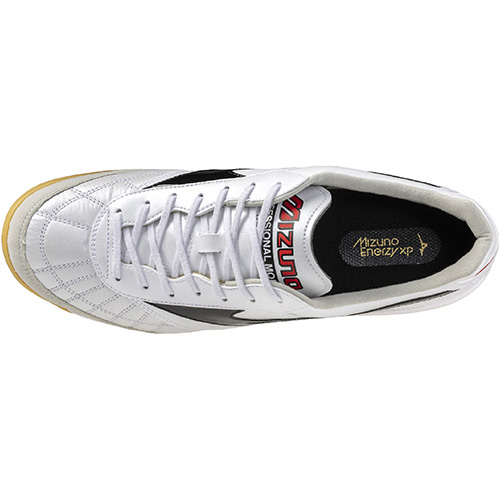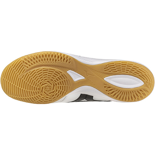 ●アッパー前足部には足馴染みの良い天然皮革を引き続き採用し、ミズノにしか出せないフィッティングを追求。また、フットサル専用クロスステッチが天然皮革の伸びを抑制。