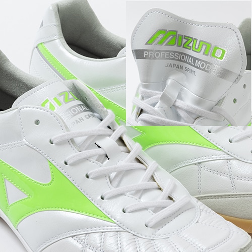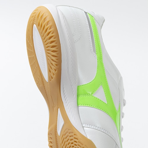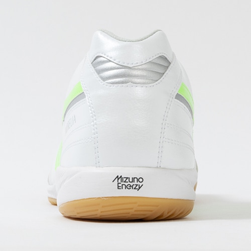 ●アッパー前足部には足馴染みの良い天然皮革を引き続き採用し、ミズノにしか出せないフィッティングを追求。また、フットサル専用クロスステッチが天然皮革の伸びを抑制。