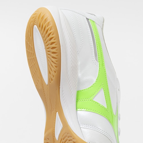 ●中足部には柔らかく、適度なホールド感を追求したソフト人工皮革を採用。フットサル特有のクイック&ストップの動作をサポート。