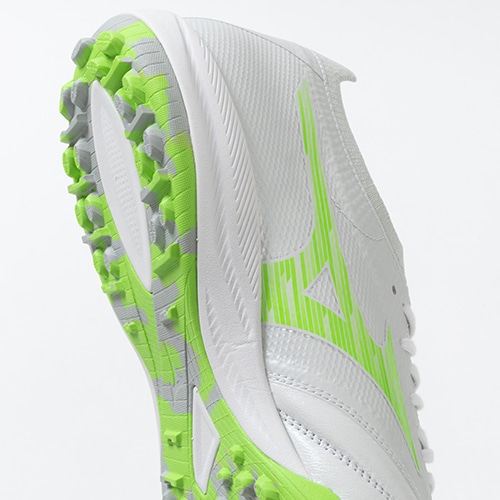 ●スクリュー型のスタッドを採用し、外側には楕円形のスタッドを配置することでさらなるグリップ力を追求。踵部分には初めてMIZUNO ENERZYを採用し、クッション性と反発性を追求。
