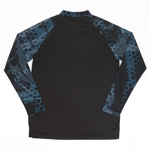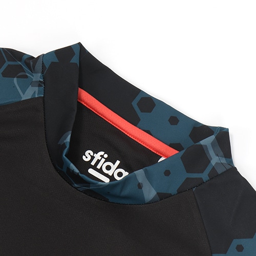 ウォーム感と吸汗・速乾性を兼ね備えた高機能素材と高いストレッチ性を持つスパンデックスジャージーでアウターでもインナーでも着用可能。半袖のプラクティスシャツとのベストコーディネートも実現。前後差を付けたモックネックディティールで適度な保温性を確保。選手に力強さを与えるHEXA DOPE HEARTグラフィック。