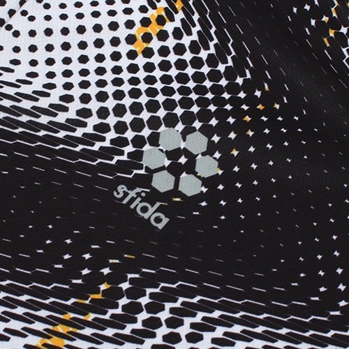 高い通気性と軽量性を実現する機能素材。サイドスリットを施し、動きやすさをサポートしています。Fake&Truth-偽りと真摯の紙一重に生まれる雑念は新たな証明のためのエネルギーを与え、常勝の機運を高めます。