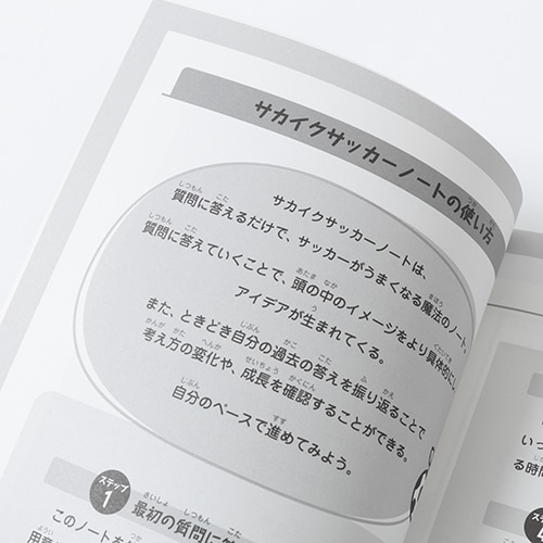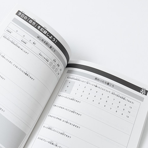 7つのステップで構成されており、毎日の「自分」を記録する振り返りページは、31日分用意されています。1か月間、質問を通して“なりたい自分”を想像し、ワクワクする目標を設定。毎日の振り返りと改善を繰り返していくことで、自分で成長を実感でき、より成長したいという「向上心」とサッカーをより深く学びたいという「探究心」を育んでいきます。