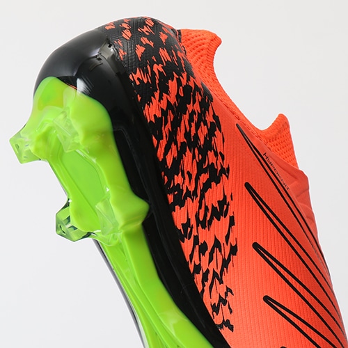●ストライクエリアの凹凸を排除するためFANTOMFIT(ファントムフィット)材のストライクキャノピーを初搭載。ボールコントロール時に大切なストライクゾーンの最大化に成功。