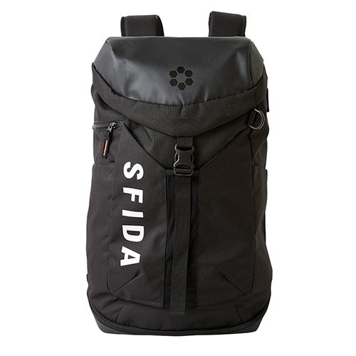 - sfida(スフィーダ)の防水マット加工バックパック。スタイリッシュな形状でスマートな移動を可能に。 ジッププラーにはsfida特長のアクセントを配色。