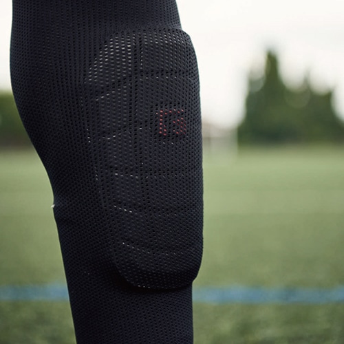 レガースをしっかりと保持するた為のコンプレッションタイプのふくらはぎカバー。メッシュタイプなので通気性もあり快適にプレーできます。