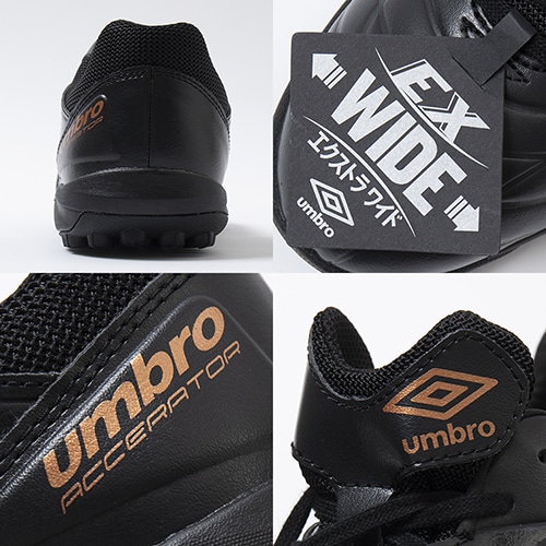 - umbro『ACCERATOR(アクセレイター)』シリーズの2023年春夏NEWモデルが登場。日本国内企画の前足部を更に広げたEXワイドラストのトレーニングシューズ。