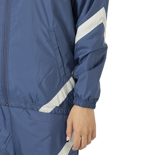 防風、はっ水性に優れた表地と裏地には保温性の高い裏トリコット起毛を採用したジュニア用ウィンドジャケット。