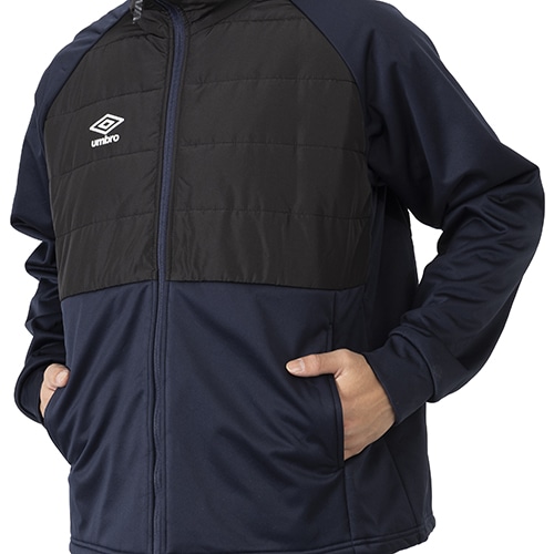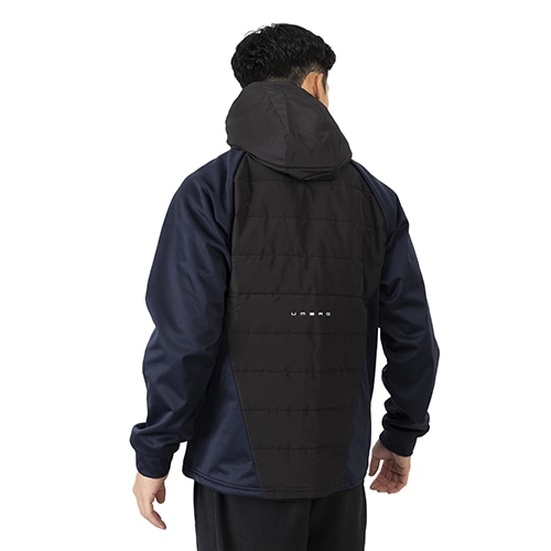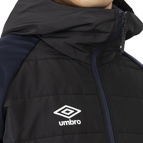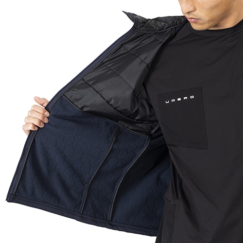 - 指導者が求めるウェアを指導者と共に細部にまで追及し創り上げた、高機能でスタイリッシュなumbro「COACHERS(コーチャーズ)」コレクションの寒さの厳しいグラウンドでの着用を想定したジャケット。保温性の高さとシルエットの良さにこだわったボンディング素材を採用。