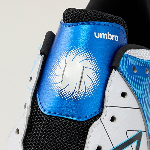 ●アンブロが持つフィッテイングサポートファンクションのAフレームをグラッフィクデザインで表現。インステップキック時のインパクトを意識しやすいプリント加工を採用。