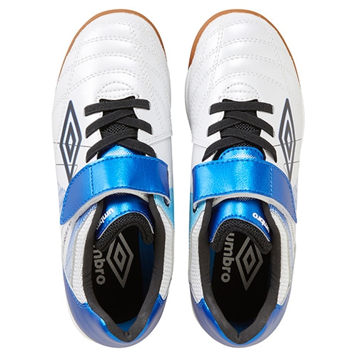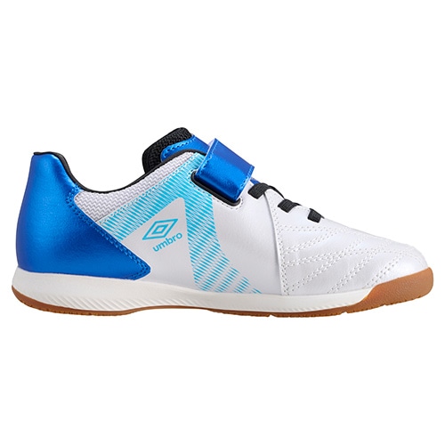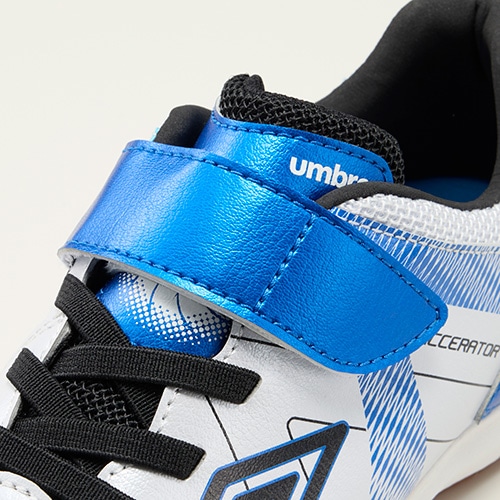- umbro『ACCERATOR(アクセレイター)』シリーズに2025年春夏の新作モデルが登場。日本国内企画のワイドラストのスタータープレーヤー向けIN(インドアコート)対応ジュニア用トレーニングシューズ 。シングルベルトモデル。