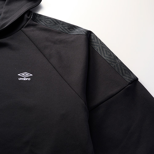 スポーツ素材を活かしながら、シルエットに変化を加えた、汎用性の高いサッカーウェア。肌触りの良いスウェット素材を採用。肩口のラインテープがデザインポイント。