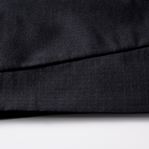 マットな表面感とストレッチ性が特徴の2種類のウーブン素材を組み合わせ。ポケット付き。