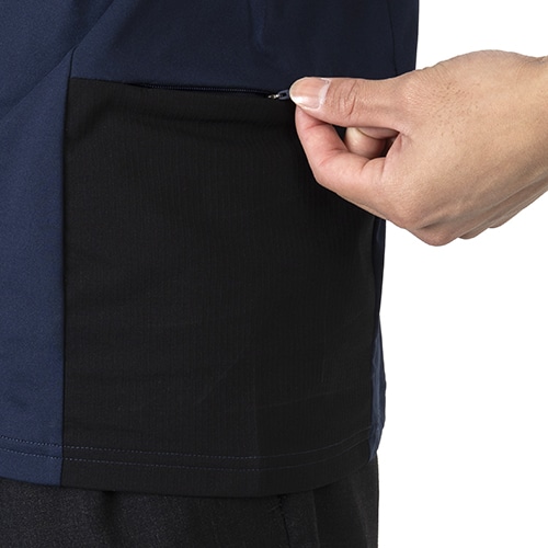 UVカット機能とクーリング機能を兼ね備えた肌触りの良さが特徴のフィールテック素材を採用し、快適な着心地を実現。両脇裾部分にファスナー付きのポケット付き。