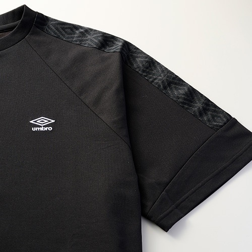 スポーツ素材を活かしながら、シルエットに変化を加えた、汎用性の高いサッカーウェア。肌触りの良さと機能性に優れたプラクティスシャツ。肩口のラインテープがデザインポイント。