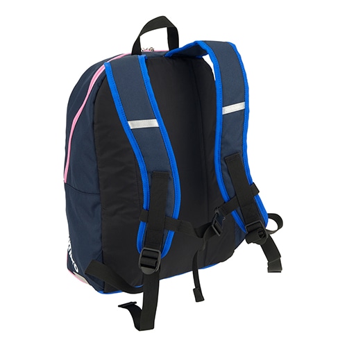 収納にはアイコンプリントが施されており、お子さまが何をどこに収納するのかが分かりやすい構造に。底部分にはシューズが収納可能で、本体横メッシュポケットにはシンガード、ボール用ネットも搭載しているので、外付けが可能。また本体内側中央には水筒用ポケットを配置している為、自転車に乗った際にも重心が崩れにくいようになっています。