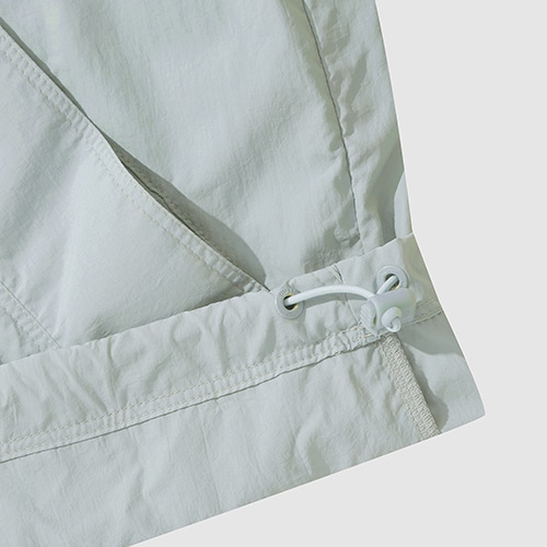 ナチュラルなカラー、柔らかいタッチの素材、背裏上部にメッシュ、背面にベンチレーション機能のサマーウーブンアイテム。裾のスピンドルでサイズ調節が可能。