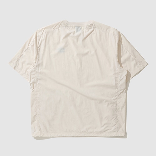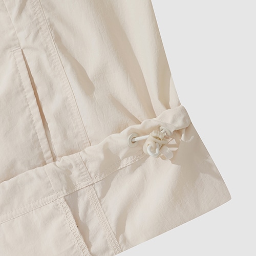 ナチュラルなカラー、柔らかいタッチの素材で、カンガルーポケットがアクセントの半袖ピステ。裾のスピンドルでサイズ調節が可能。
